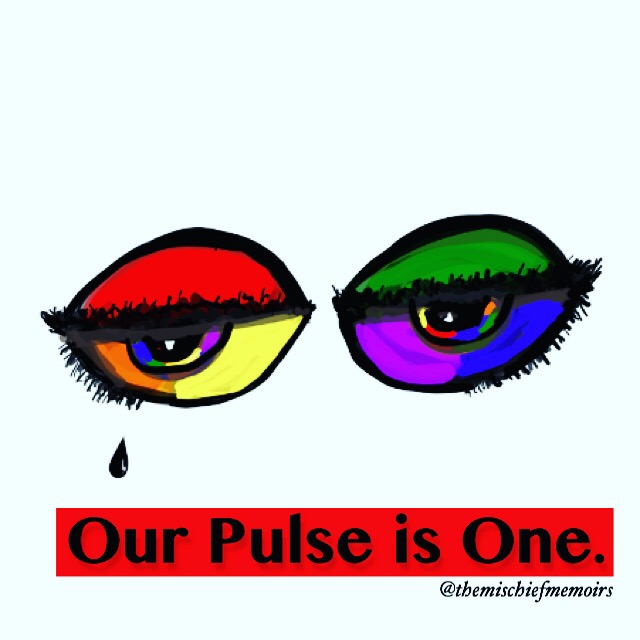 Our Pulse is One. By themischievousannaJune 12, 2016 ( 2 ) The violence in a rainbow, Is not without A hope for, Light. Share this:Share on TumblrTweet Click to share on Reddit (Opens in new window) Reddit More Click to email a link to a friend (Opens in new window) Email Click to print (Opens in new window) Print PocketLike Loading... Categories: Art, illustration, Politics, WritingTags: art, current events, emotions, fiction&poetry, illustration, lgbt, news, Personal, poems, poetry, Politics Related Articles Natural Mistake. By themischievousannaMarch 9, 2025 Messenger in a Bottle. By themischievousannaFebruary 15, 2025 Home of the Fee, Land of the Claim Denial. By themischievousannaFebruary 12, 2025 2 comments › Amy Reese June 13, 2016 • 5:19 am What a way to stand up to the hate, inspiring hope. That’s what we need. LikeLiked by 1 person Reply ↓ themischievousanna June 13, 2016 • 6:04 am Wow, thank you so much. I can only hope to contribute to the many people who are fighting hate with love and compassion! โค๏ธ๐๐๐๐ LikeLiked by 1 person Reply ↓ Leave a comment Cancel reply Δ